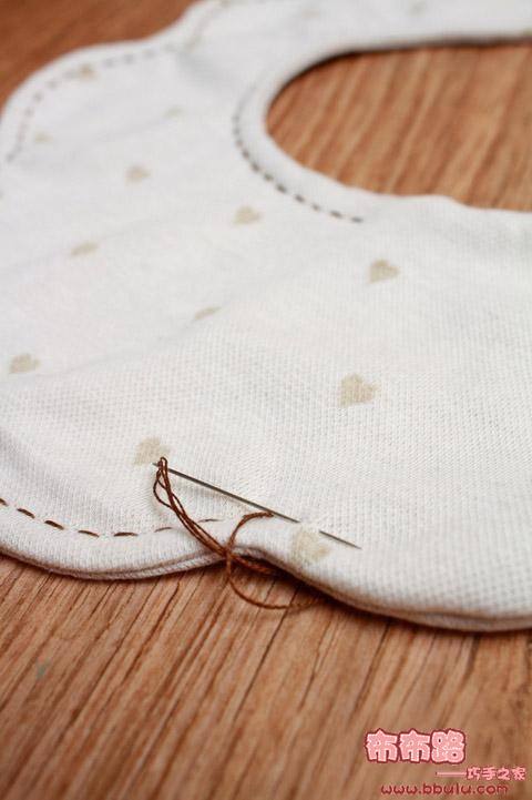 4.沿边缘缝合一条均匀的明显,平针缝就可以