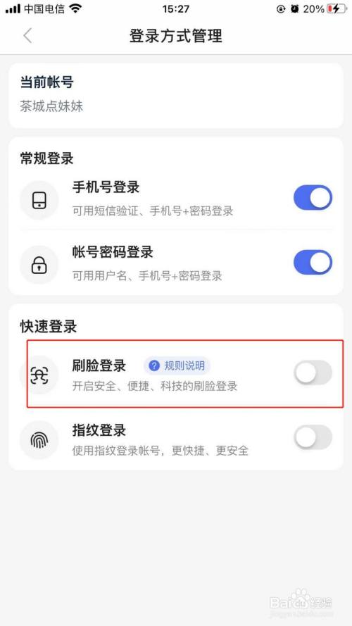 然后开启刷脸登录开关即可,如下图