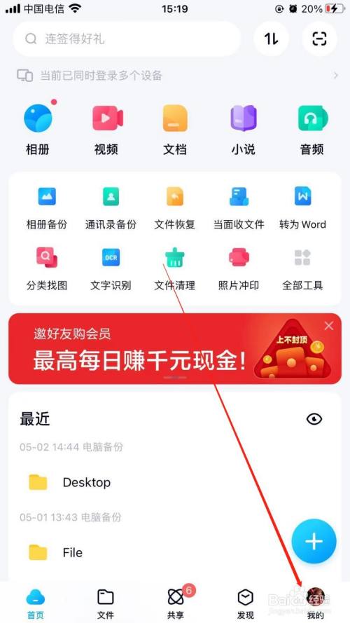 首先点击手机桌面百度网盘打开并登录成功,如下图