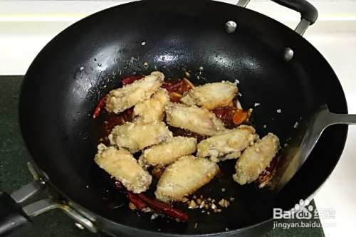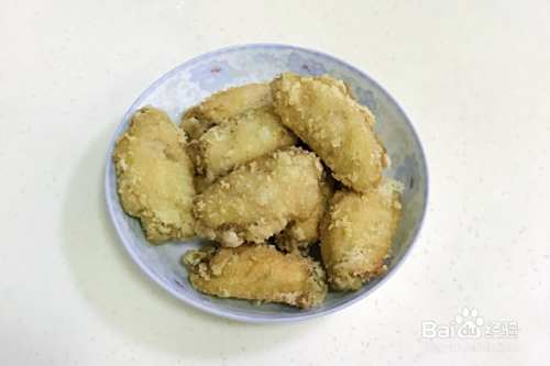 锅中加入足量的油,把油烧到六成热。把准备好鸡翅下锅炸到表面金黄酥脆,炸好之后控油捞出。