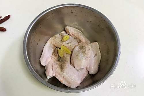 最后准备一些姜片,料酒来腌制一些鸡翅,彻底去除鸡翅里面的腥味,