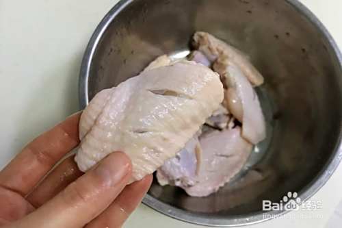 处理一下鸡翅,首先用清水清洗干净之后,在水里面浸泡15分钟,充分去除里面的血水,等时间到了之后沥干水分备用就可以了。