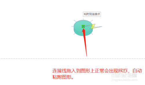 正常拖入连接线到图形上会出现绿框可以自动粘附图形