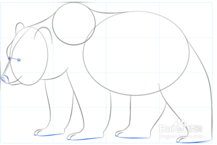 勾勒出熊的鼻子和腿的形状。
