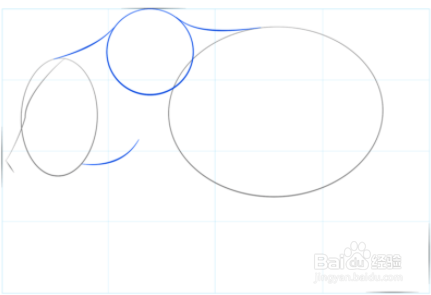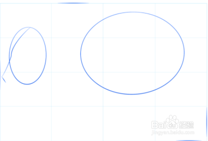 画两个椭圆,它们将变成头部和身体。画线,它将作为头部的中心和鼻子的形状。