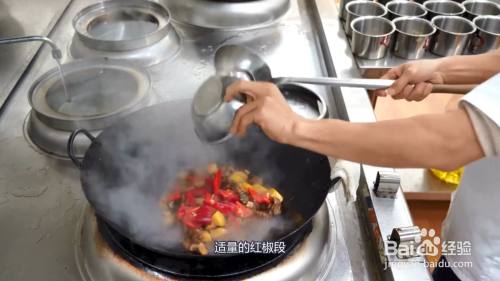 中途再加入切好的姜粒炒香,再加入适量生抽、适量蚝油,适量老抽、翻炒均匀后加入适量水。