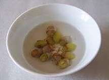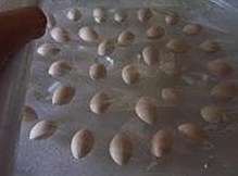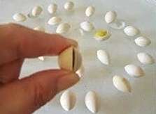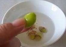 扎的同时左手手指轻轻捏挤白果,白果里面的白色芽芯就会被挤出来。