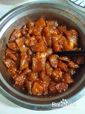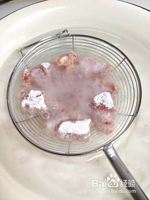 笊篱沁入清水,淹没肉再轻轻提起,沥干水分!