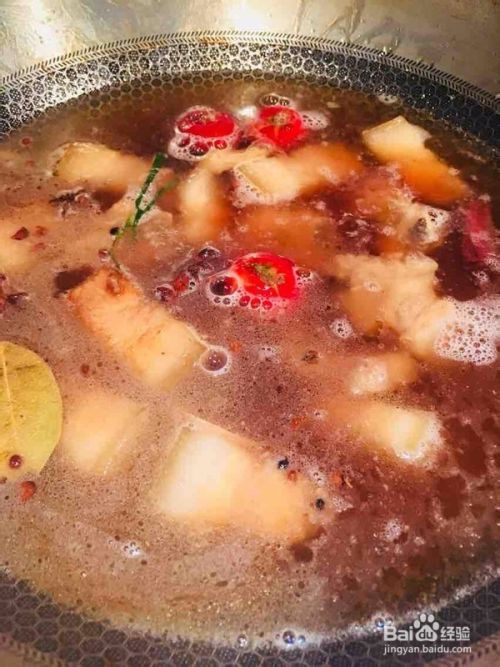 小火焖煮40分钟后转中大火 挑出里面的香叶、八角、葱姜、山楂,