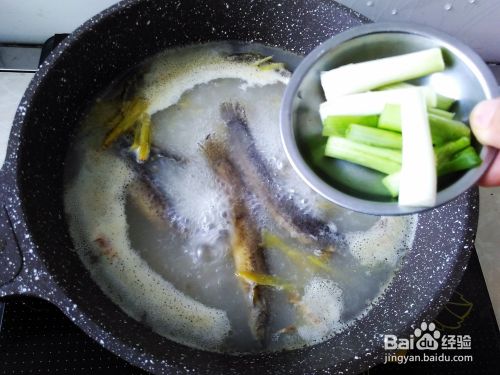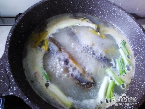 煮至汤水变成奶白色,然后放香葱白进去,再继续煮1分钟左右。