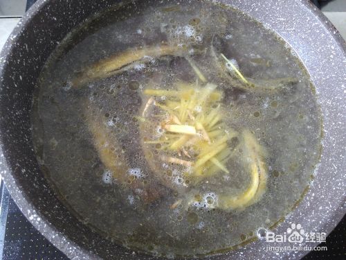 2、然后把泥鳅煎至微黄色,加水进去滚。