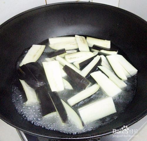 煮一锅开水,把茄子放入煮2分钟。