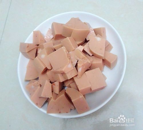 把火腿肠切成丁。