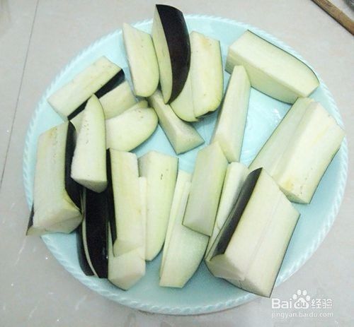 把茄子切成三角形的菱角条。