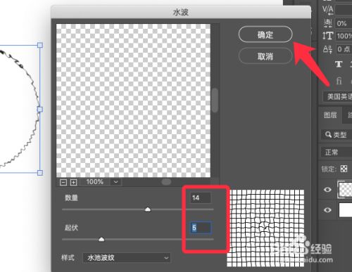 再添加扭曲,水波滤镜,输入数量值,点击确定。