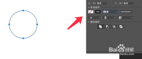 点击椭圆工具,绘制一个圆形,设置黑色描边并关闭填充。