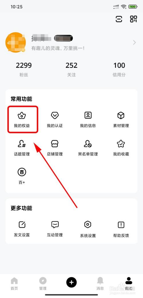 在【我的权益】中,选择【百粉权益】。