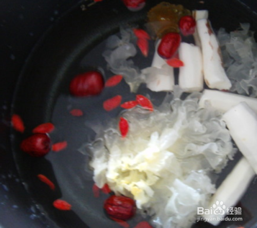 紧接着将银耳和山药放到锅里,银耳可以不用提前浸泡,多煮一会就行。