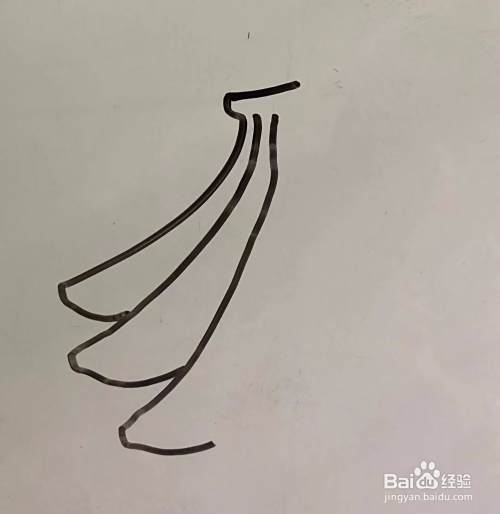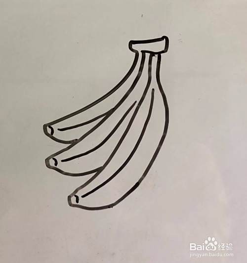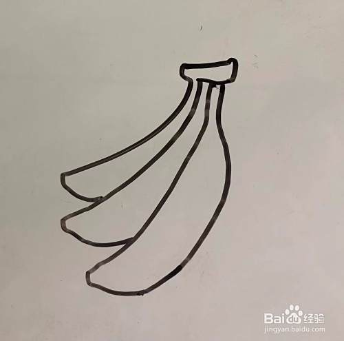 先把一挂香蕉上面部分的梗和第一条香蕉的轮廓画好;
