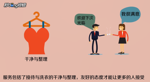 4 服务包括接待和洗衣的质量,友好的态度能让客人感到舒服,好的质量能让客人下次还愿意来。 END