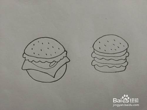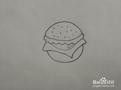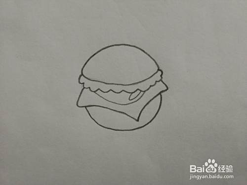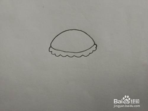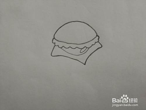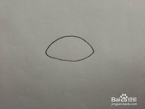 先在白纸上画一个两头稍尖的椭圆,作为第一层的面包。