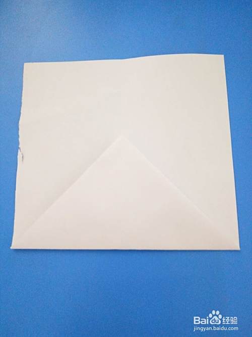 步骤3折好之后,把折纸反过来,把下面的角往上折,折出一个三角形。如图。