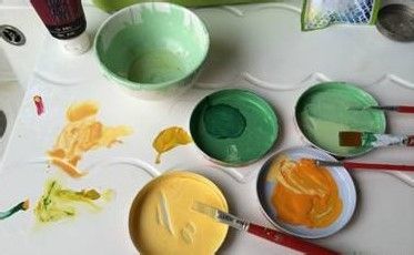 上色。图案画好了,下面就到上色的环节了。水性漆最棒的地方是它没有刺鼻的味道,颜色也很多,你可以选自己喜欢的颜色,使用起来就跟普通颜料加水调色一样简单。