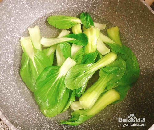 热水烧开,放入油,煮几片小油菜,好看好吃,煮油菜时在水里加炸过东西的油和少许盐,这样油菜更亮丽。出锅沥干水分即可