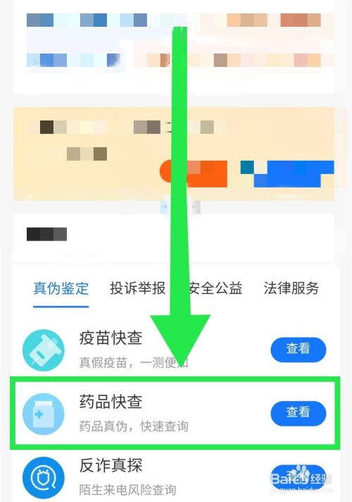第四步:然后就进入了支付宝的安全中心,在此页面,滑动屏幕至底部,就可以查看到“药品快查”功能,点击右侧的查看;