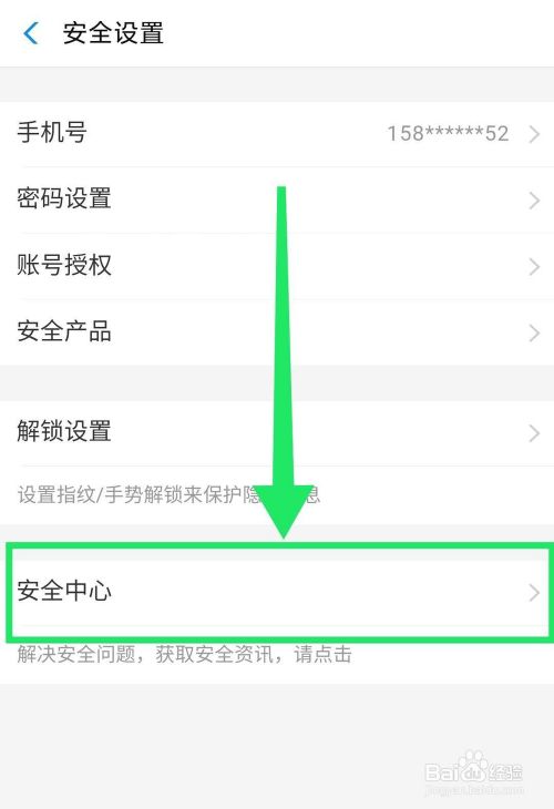 第三步:在安全设置页面里,向下找到“安全中心”,点击打开;