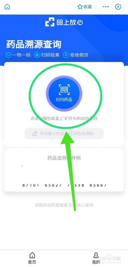 第五步:在此页面中,点击图片中箭头所指的位置,去扫描药品上的“追溯码”,这里不方便放置条形码,就不演示了。