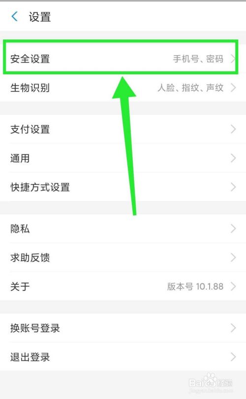 第二步:在设置页面里,找到“安全设置”并点击进入;