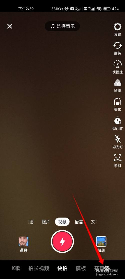 在抖音首页,点击底部的加号键。