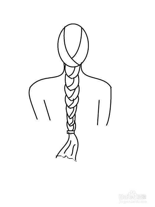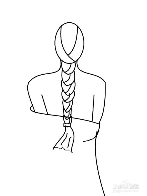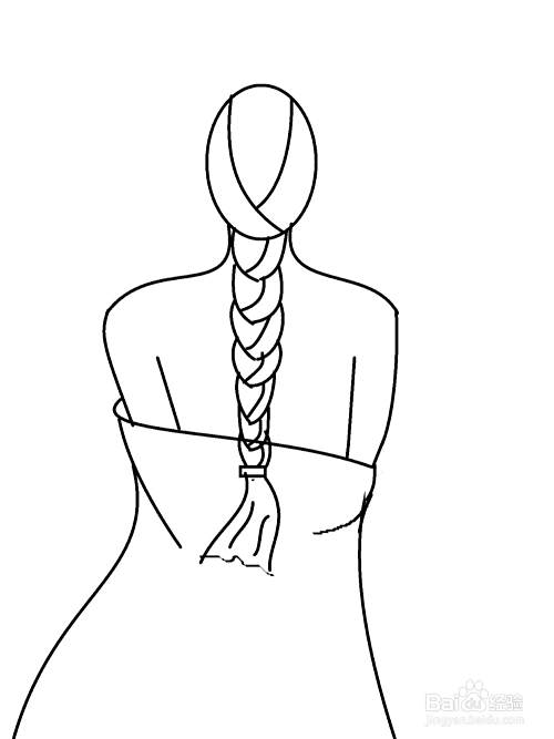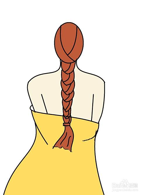 最后涂上颜色,这样麻花辫女孩的背影就画好了。