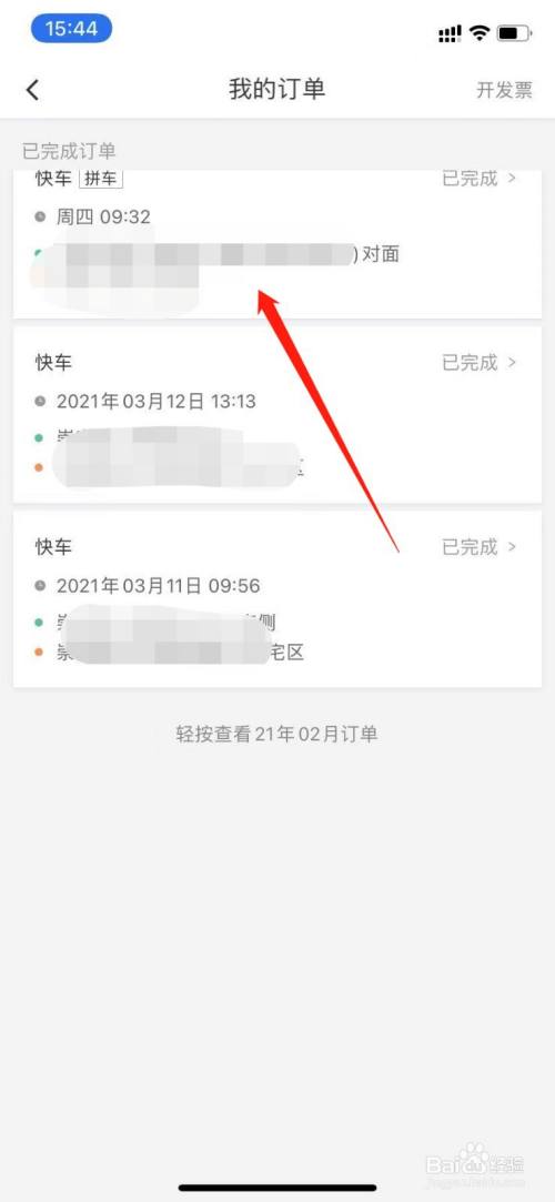 进入订单后,可以看到今年的行程记录,点击某一个订单;