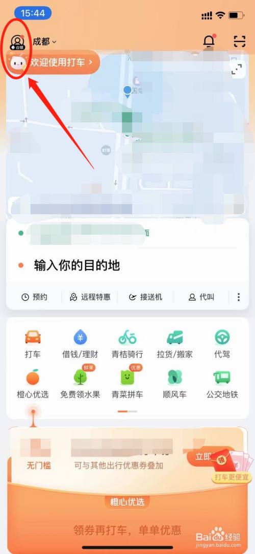 首先,在手机上打开滴滴出行,然后点击左上角自己的头像,进入我的页面;