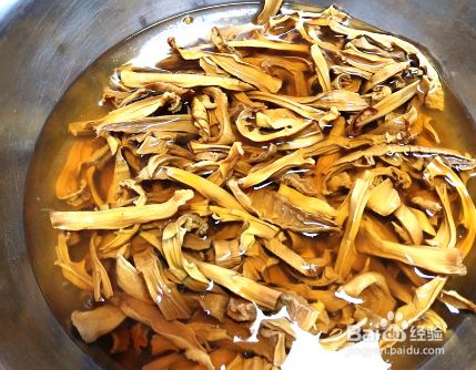 将抓出来的干笋丝放在盆里,盆里放上温水,让干笋丝充分的吸收水分慢慢的泡发,一般需要泡十二小时左右,期间需要换水,如果是冬天,换两次水即可,如果天气较热,则需要增加换水的次数,否则干笋丝酸了就不能吃了。