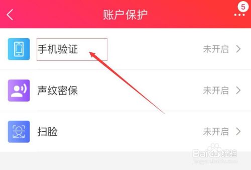 接着,进入账户保护界面,在账户保护界面中,选择“手机验证”,点击进入。如图: