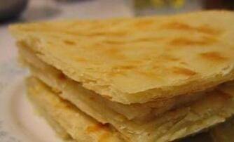 这种饼外边用一层面皮包起来,而内有十数层,层层相分,烙熟后,外黄里暄,酥软油润,热食不腻,凉吃不散口。