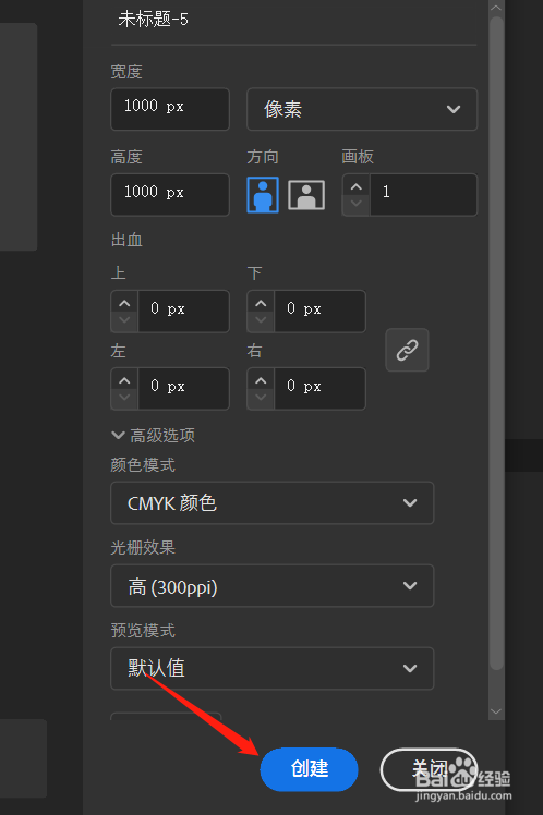 点击打开电脑中的ai软件,点击新建按钮,弹出新建文档对话框,设置参数点击创建按钮。