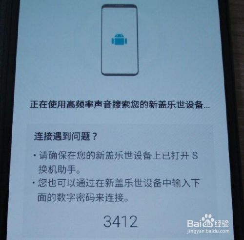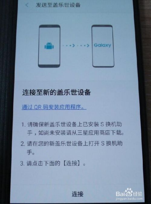 在新的Note8手机上也运行S换机助手,并且依次选择“无线”和“接收”,在旧手机上点击“连接”,如图所示,旧手机会用高频率声音搜索新手机,并且互相连接成功。