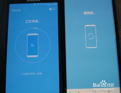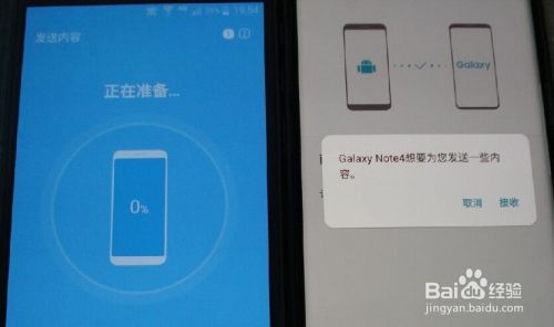 旧手机会显示“正在准备”,新手机会提示旧手机“想要为您发送一些内容”,如图所示,点击“接收”,旧手机开始通过无线备份内容,新手机显示“请稍候”。
