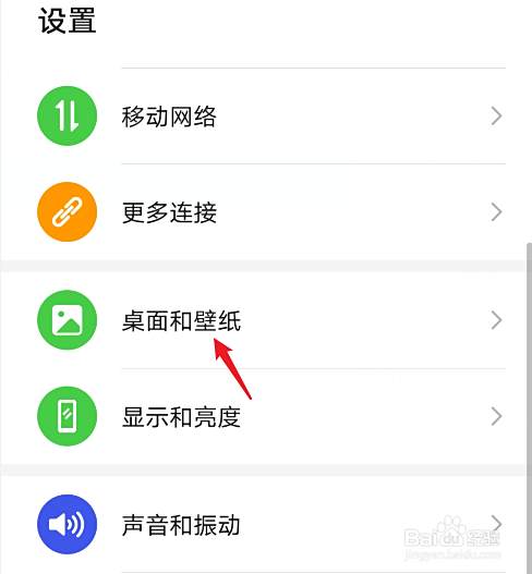 打开荣耀50手机设置后,点击桌面和壁纸的选项。