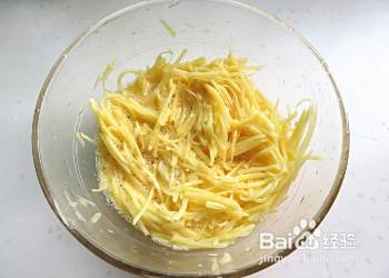 土豆去皮后可以用擦丝器擦成细丝这样比较易熟