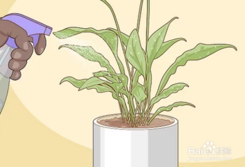 每周用喷雾瓶将叶子喷雾几次。和平百合在热带高湿度条件下壮成长,因此,除给土壤浇水外,还定期用喷雾瓶将百合喷雾,以复制雨林中的湿空气。在夏季生长季节中,您的植物会更频繁地雾化可以为花朵提供更多的水,它会更健康。