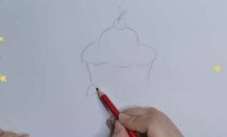 画蛋糕把装饰蛋糕的樱桃画上,在勾画蛋糕的形状,描蛋糕边,涂上颜色,下面有详细步骤。