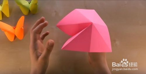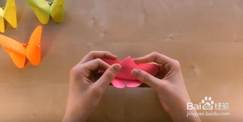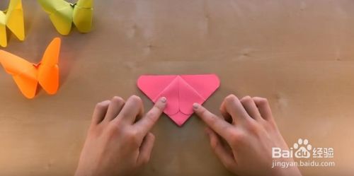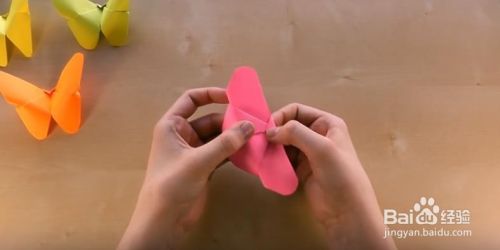 手捏住折叠过来的部分(中间),两边微微翘起。一只漂亮的蝴蝶就完成了。