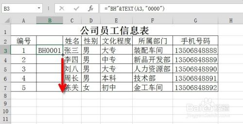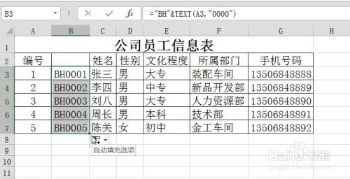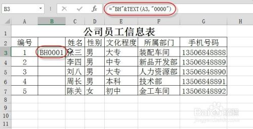 总结:公式="BH"&TEXT(A3,"0000")含义 用&来连接两个字符串,TEXT()函数来统一位数,不足4位补0。