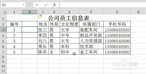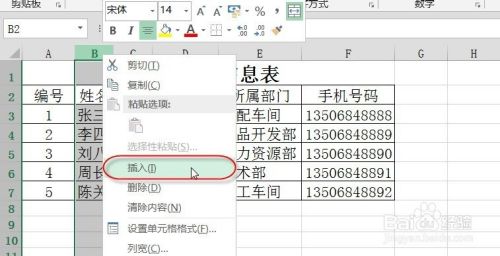 选中B列右击鼠标,弹出快捷菜单中选择“插入”命令,即插入一个辅助列
