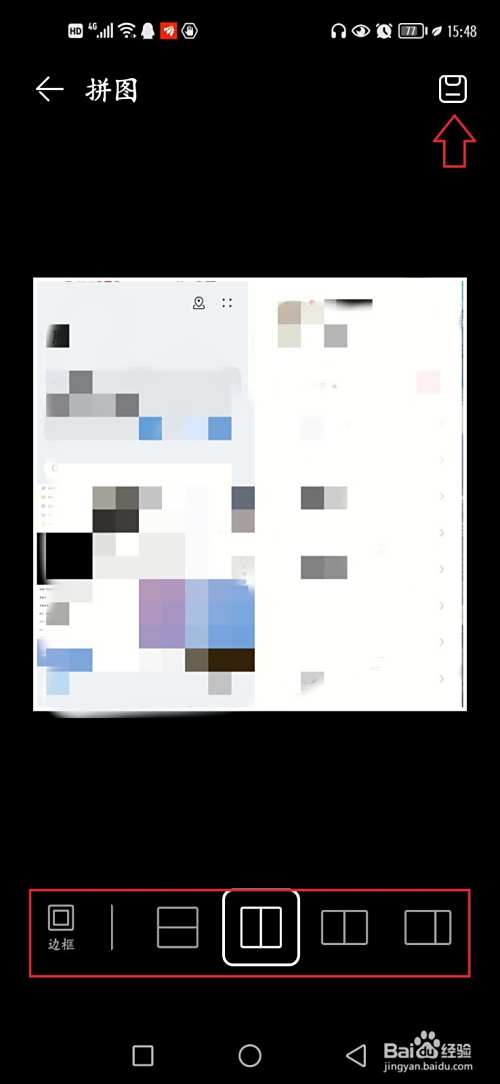 在拼图页面,进行排版选择,点击“保存”,即可完成。